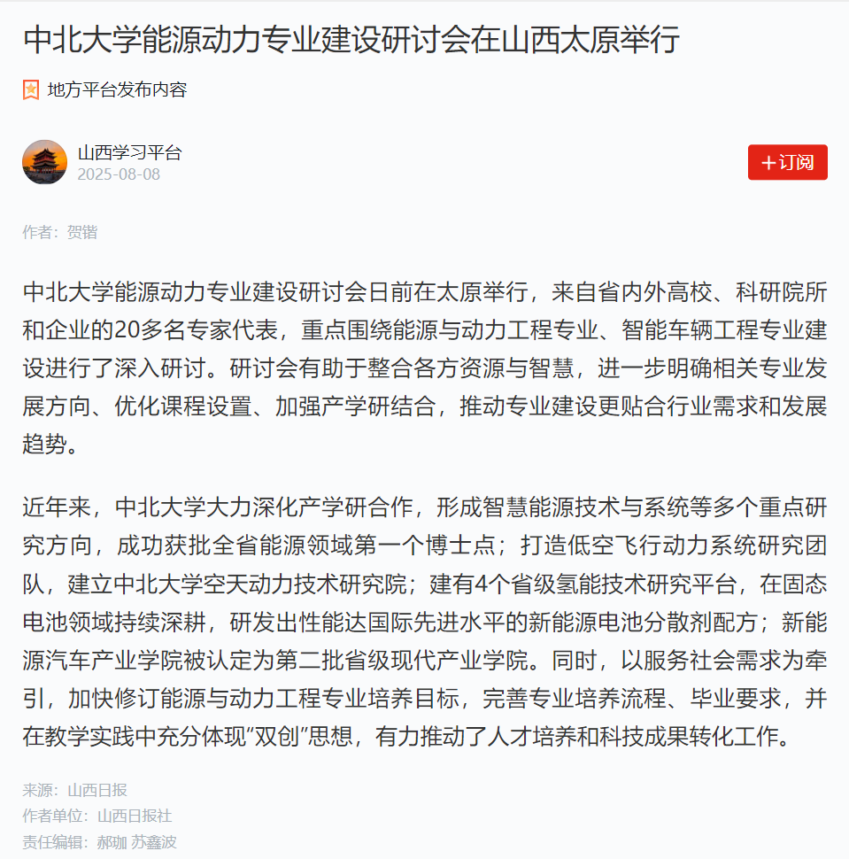 【学习强国】中北大学能源动力专业建设研讨会在山西太原举行