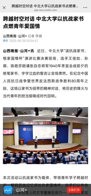 【山西晚报】跨越时空对话 中北大学以抗战家书点燃青年爱国情