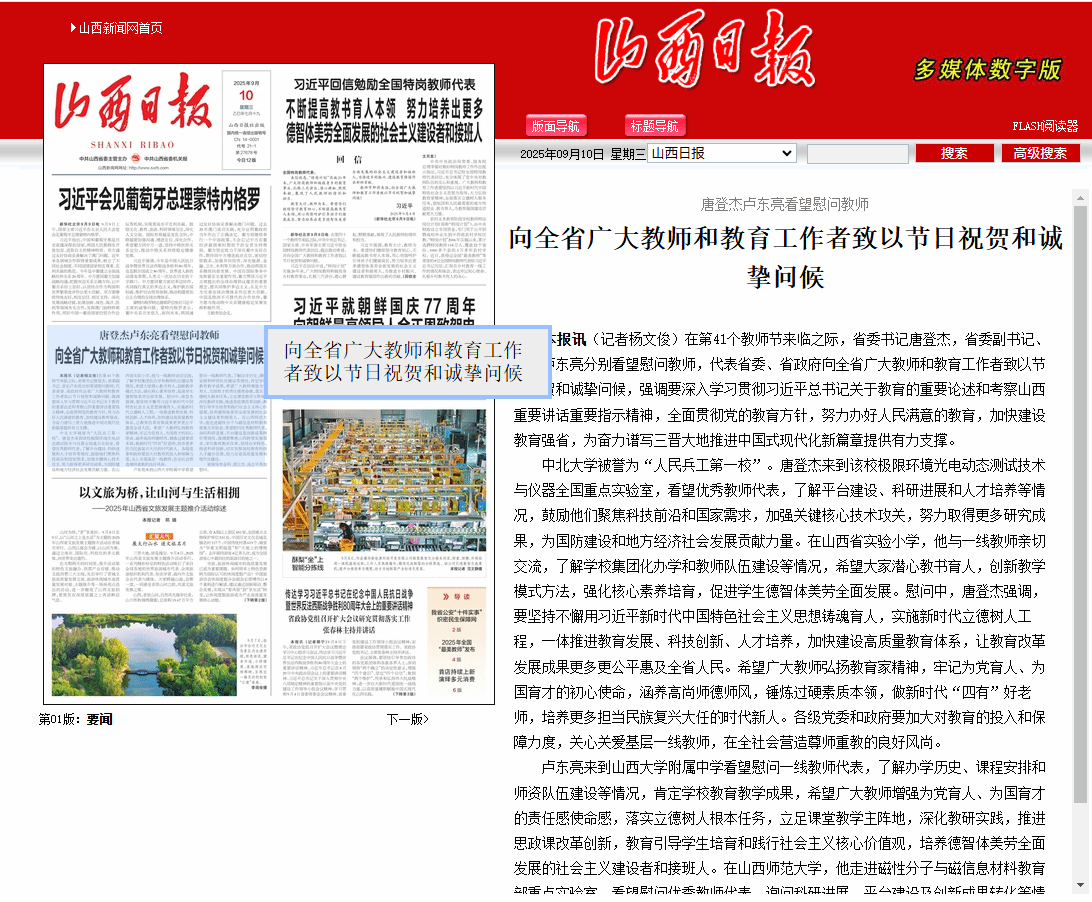 【山西日报】唐登杰 卢东亮看望慰问教师 向全省广大教师和教育工作者致以节日祝贺和诚挚问候