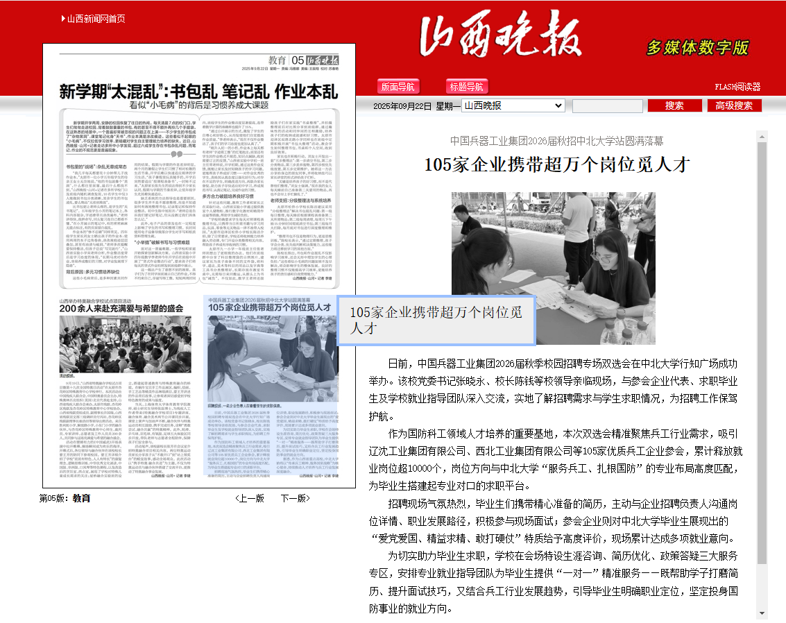 据悉,作为山西省重点高校,中北大学始终以“传承兵工精神、服务国家战略”为核心使命,持续推动人才培养与兵工行业发展深度融合。