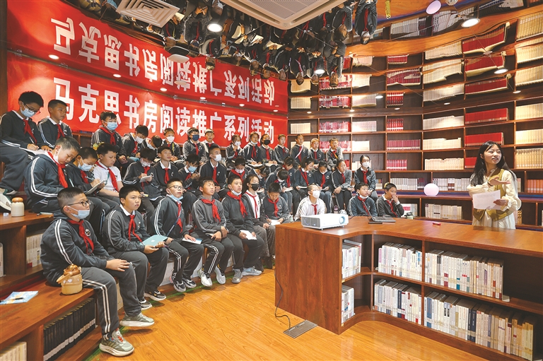 图②:山西大学马克思主义学院组织师生在太原市马克思书房为小学生讲思政课。