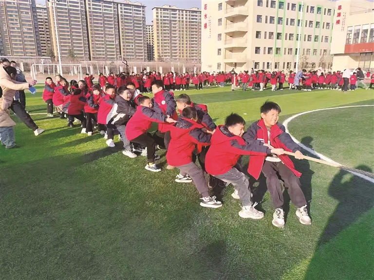 图③:运城市垣曲县城南小学学生课间开展拔河比赛。