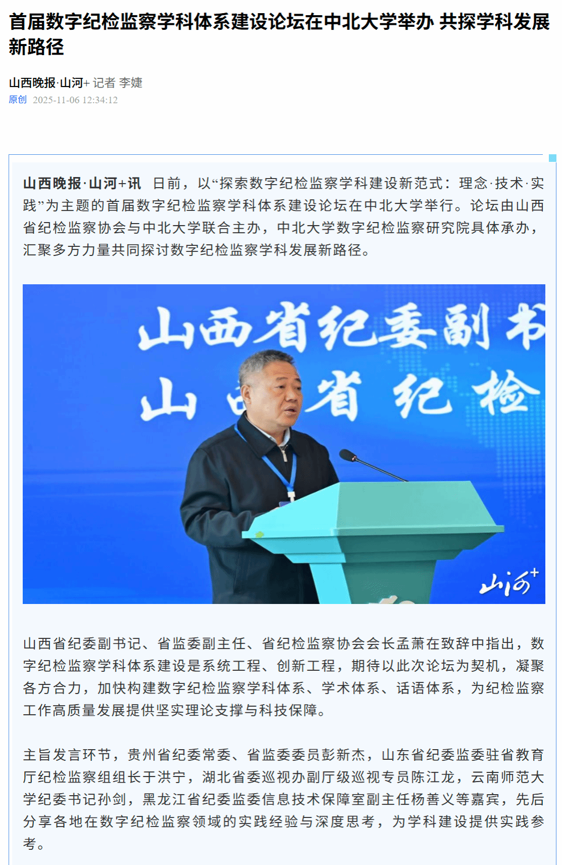 【山西晚报·山河】首届数字纪检监察学科体系建设论坛在中北大学举办 共探学科发展新路径