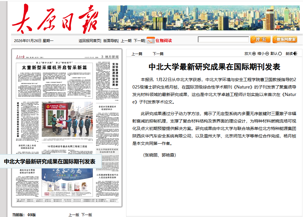 【太原日报】中北大学最新研究成果在国际期刊发表