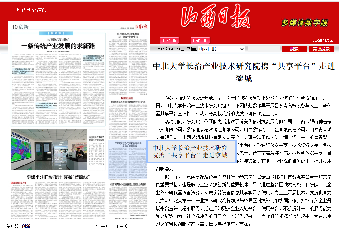 【山西日报】中北大学长治产业技术研究院携“共享平台”走进黎城