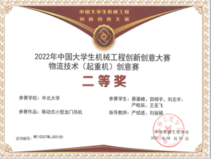 2022年8月25日至26日,由中国机械工程学会主办,西南交通大学承办的第七届中国大学生机械工程创新创意大赛之物流技术(起重机)创意赛全国总决赛圆满结束。本次大赛有来自全国67所高校的200余支队伍近千人参赛。大赛通过现场直播打分及裁判线下评分相结合的方式进行综合评审。我校第三次参加该项大赛,经过两天的激烈角逐,最终荣获全国二等奖的好成绩。