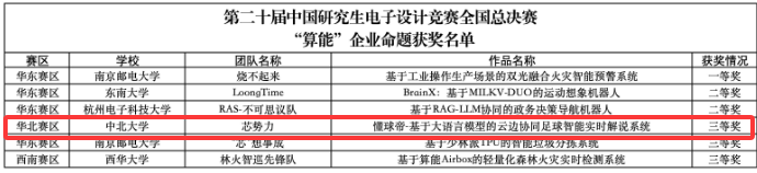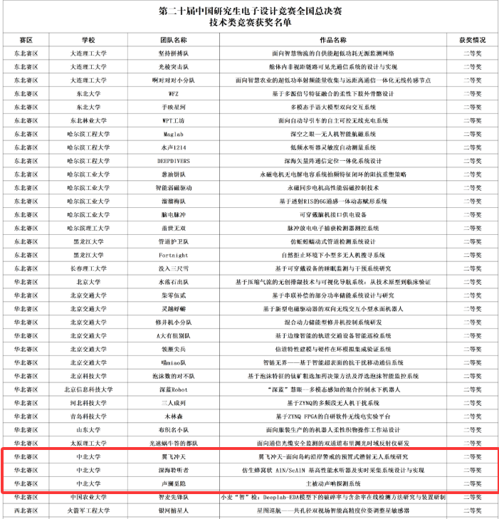本届竞赛于2025年3月正式开赛,共吸引了333所高校及科研院所的8228件作品参赛、参赛师生超过34000人,相比往届规模增长12%。我校在主办单位学生工作部(人民武装部)和赛事承办学院信息与通信工程学院的积极组织下,共64支队伍经过校赛、华北赛区初赛、赛区现场赛的激烈角逐,获得华北赛区技术赛获一等奖13项、二等奖18项、三等奖15项的良好成绩;最终6支队伍成功晋级全国总决赛。本届比赛中,在同学们及指导老师的辛勤付出下,作品水平提升显著,获得了较好的比赛成绩。