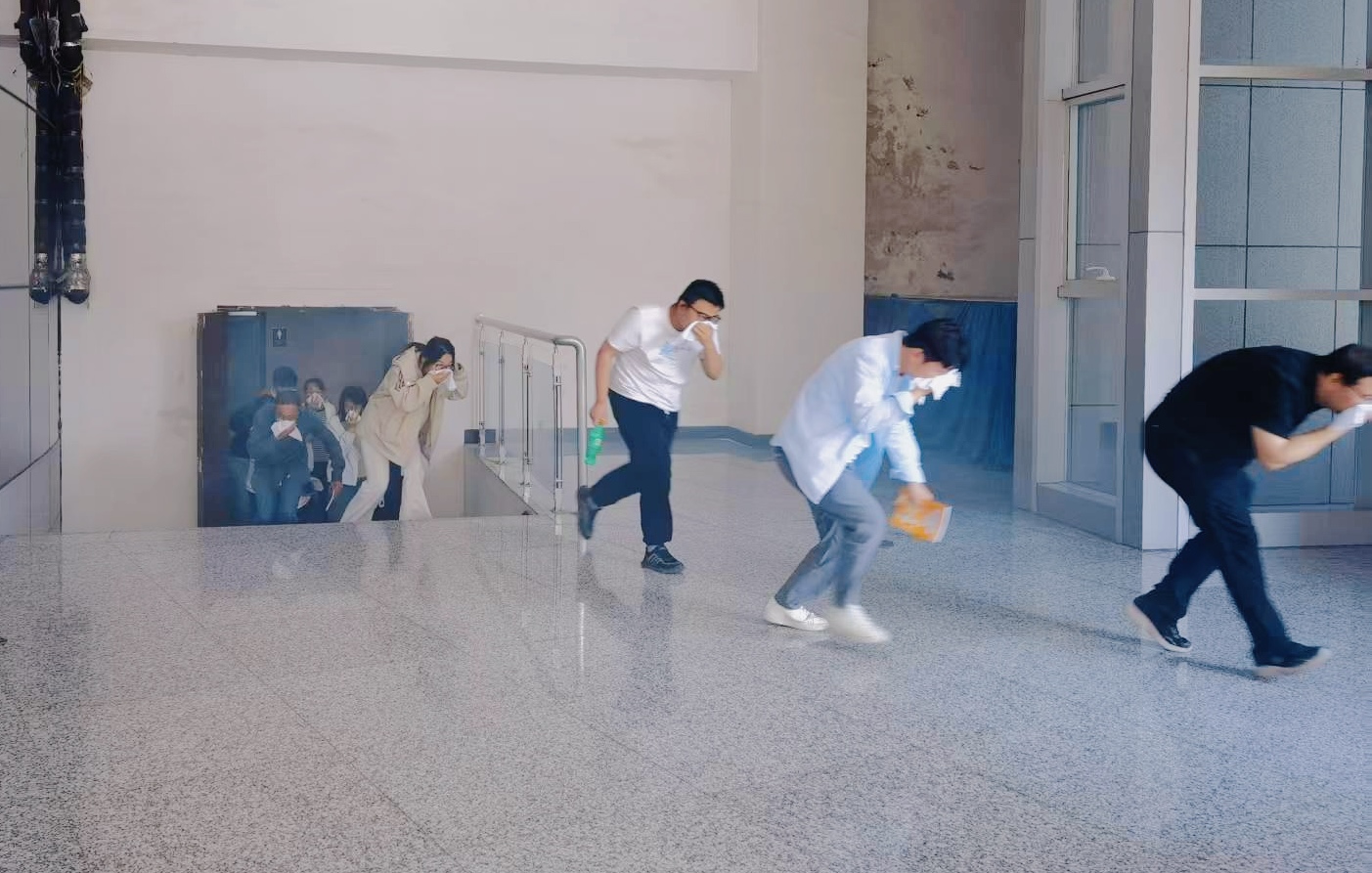 会后,全体人员以会议室为场景进行疏散演练,安全保卫部相关工作人员对所有二级单位消防技能培训负责人进行火灾报警、灭火器和消防栓的实践实操现场指导、并考核打分。