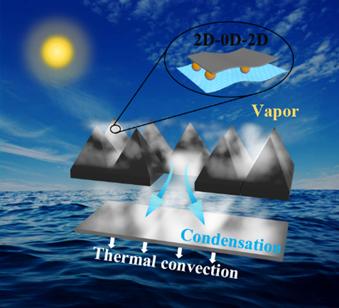 该研究设计了一种可以将热能约束在夹层结构内的光热蒸发器,该蒸发器是将还原氧化石墨烯、煤基碳点和 MXene 依次在三聚氰胺海绵骨架上负载制备而成。得益于其独特的结构和各组分的协同作用,该蒸发器不仅实现了高的蒸发速率和光热转换效率,还展现出了优异的抗盐和抗污染功能。提出了一种基于倒置结构的新型蒸发-冷凝装置,该装置通过将蒸汽冷凝过程置于底部,显著降低了顶部光损耗,同时采用具有疏水涂层的高导热材料作为冷凝收集器,并通过下方大量水体进行冷却,促进潜热耗散,加速滴状冷凝过程。该倒置冷凝装置获得了创新高的水收集速率和太阳能集水效率,是传统单级太阳能净水器的4.6-7.7倍。结合对比实验和理论计算结果表明,光热蒸发器的高蒸发性能与多功能特性以及倒置蒸发-冷凝装置的高效水收集能力,为解决淡水资源短缺问题提供了切实可行的技术方案。
