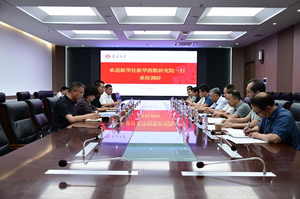 赵贵哲向来宾介绍了学校的发展历程及办学特色,表示学校将积极搭建合作平台,探索双方合作模式,实现优势互补,共同发展。曹占忠详细介绍了新华指数研究院的业务范围和发展方向,希望借助公司丰富的数据资源助力学校发展。双方表示将在信息采集、数字化平台建设等方面加强合作,形成共同产品,互利共赢,促进双方事业高质量发展。