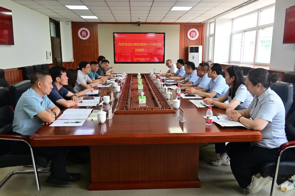 6月12日上午,太钢总医院副院长黄国顺率队来校开展调研交流。副校长刘俊出席调研座谈会,相关职能部门及院系负责人参加会议。
