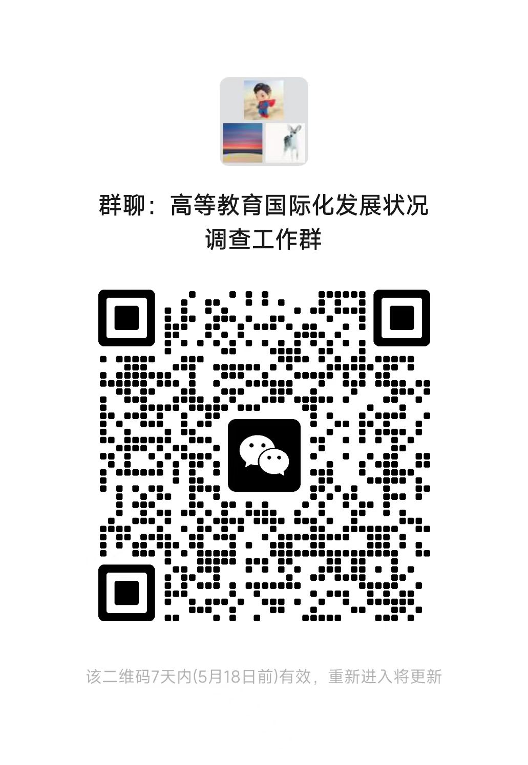 根据教育部《关于开展“2023年中国高等教育对外开放发展状况调查”的通知》,国际交流合作部将牵头完成我校对外开放发展状况调查。请各学院、人力资源部、学生工作部、财务部、教务部、科学技术研究院、发展改革部、研究生院、招生与就业工作部、宣传部安排专人进入微信工作群(二维码附后),根据要求填报相应数据和信息,不虚报、不瞒报、不漏报,高质高效完成填报工作。