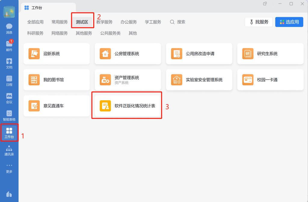 为简化工作流程,信息中心在学校企业微信开发了“软件正版化情况统计表”应用。各单位要高度重视,确保数据完整、佐证材料齐全,并于5月27日前完成线上填报。审批流程为:各单位综合科填报—单位负责人审批。填报说明见附件。