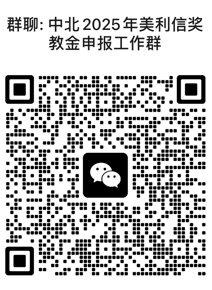 参加师德建设先进集体、师德标兵和“美利信奖教金”评选的,请提前准备3分钟的汇报ppt,师德建设先进集体、师德标兵由各二级党组织负责人汇报,美利信奖教金由申报人本人汇报;申报“美利信奖教金”的教师,请提前扫码加入“中北2025年美利信奖教金申报工作群”。