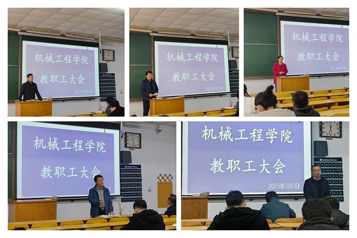 2023年3月1日下午,机械工程学院在08101H教室召开新学期工作部署会,会议由院党委书记孙旭东主持,全体教职工参加了本次会议。