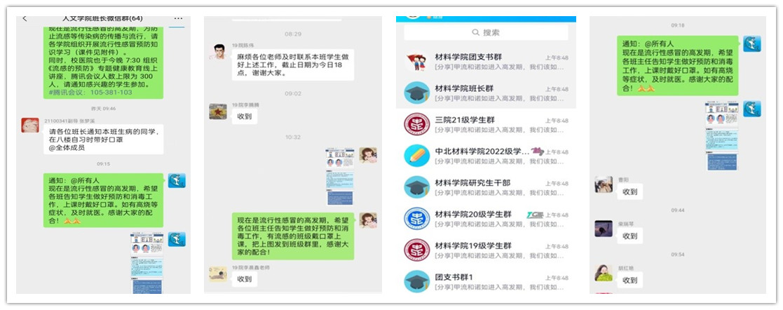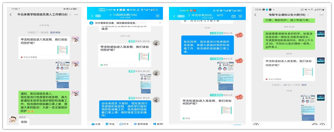 同时,各学院通过班会、群聊等方式开展了流感预防图文知识的宣传与学习。