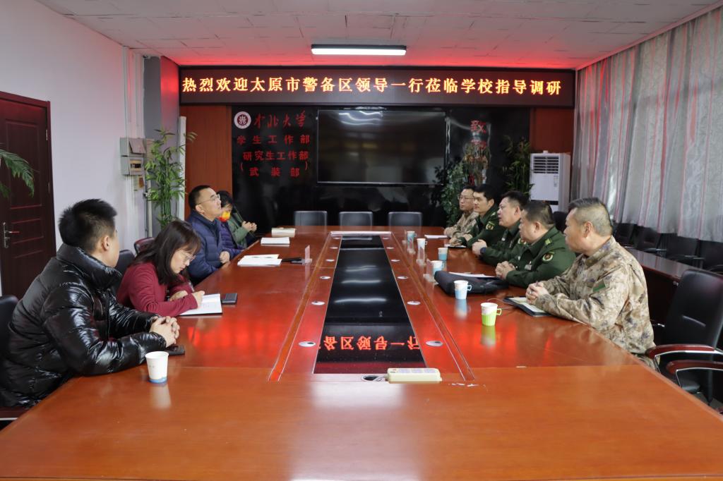 为深入了解高校征兵工作的好经验、好做法,兵员储备工作上的好模式、好方法,2023年2月8日上午,太原警备区动员处温彦一行4人在尖草坪区武装部部长王乐波等人的陪同下,来我校调研征兵工作开展和兵源预征预储工作落实情况。学生工作部、武装部部长李俊华,科长田海燕、张海明、蔺玄晋和团委社团管理部部长孙哲元参加调研交流会。