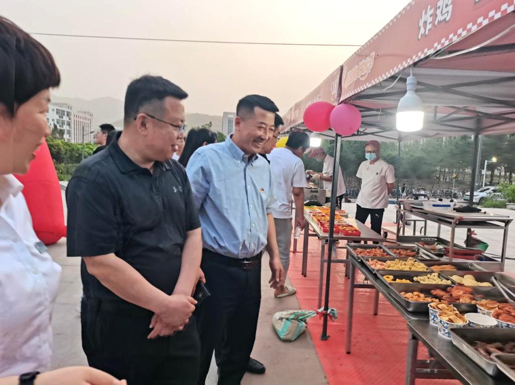 为丰富校园生活,营造美好的夏日氛围,让广大师生在繁忙的学习与工作之余尽情享受美食带来的愉悦,由后勤管理部饮食服务中心举办的第二届美食文化节于2025年5月16日盛大开幕,后勤管理部党总支书记杨湖、部长李耀明莅临美食节现场。