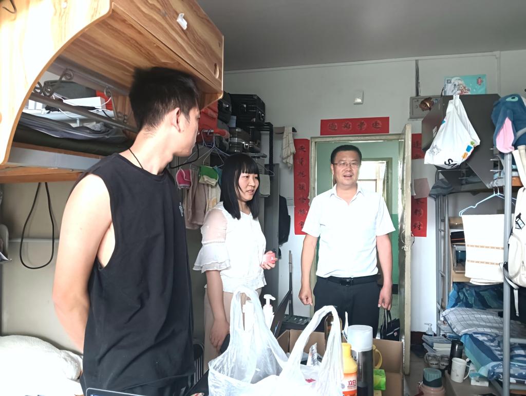 走访过程中,院领导们还特别关心毕业生的生活细节和思想动态,仔细查看宿舍环境、关切询问行程安排,叮嘱同学们在离校期间务必注意人身财产安全、文明有序离校,以良好的精神风貌开启人生新篇章;深情嘱托毕业生们在奔赴五湖四海后,要常与学院、老师保持联系,常回母校看看。