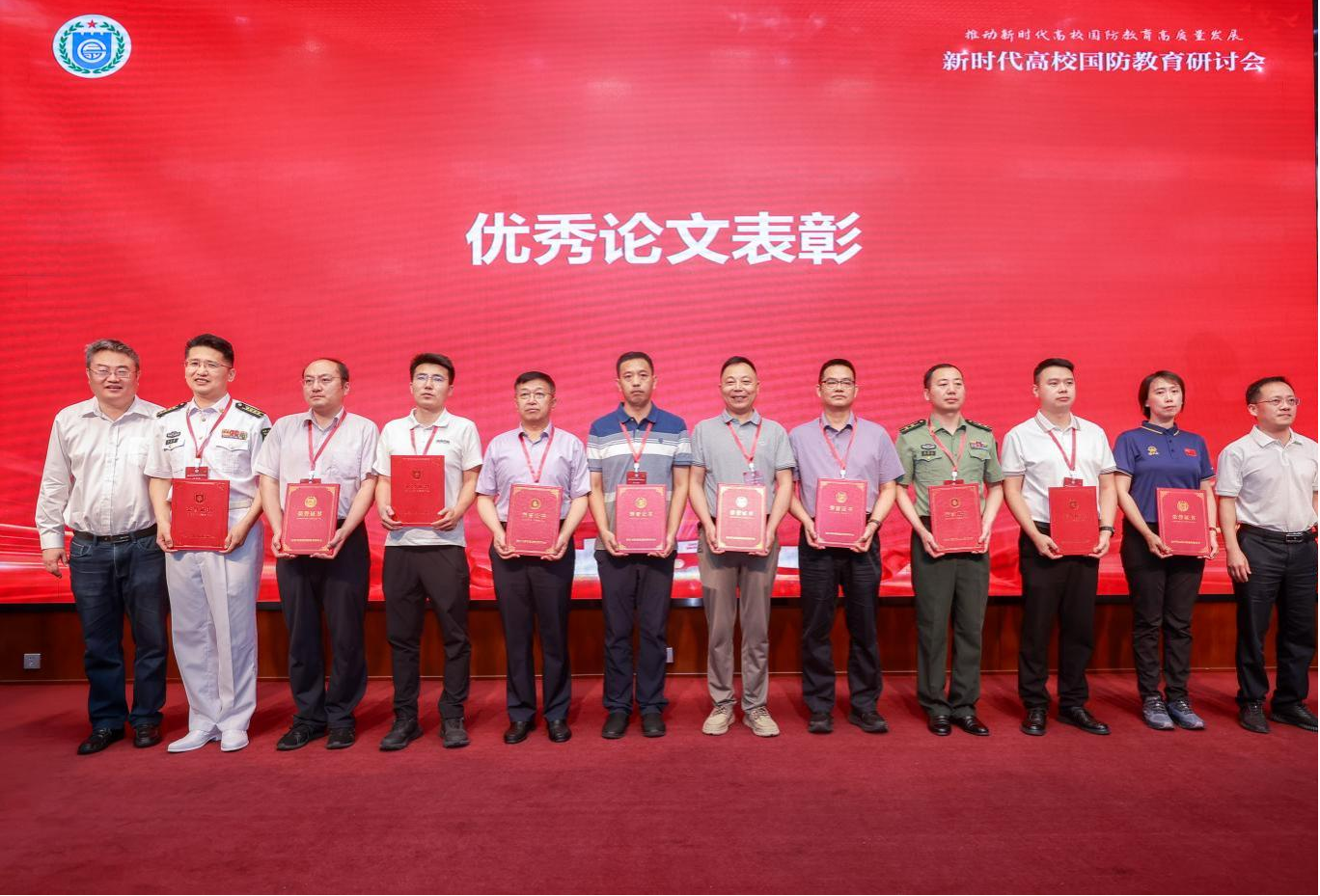 在大会表彰环节,我校军事课教师蔺玄晋提交的论文《普通高校学生军训预征预储承训力量体系建设研究—以中北大学“国防后备人才训练营”建设经验为例》获评优秀论文,并作为获奖代表上台领奖。