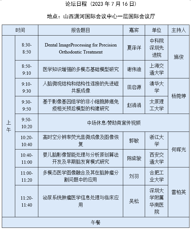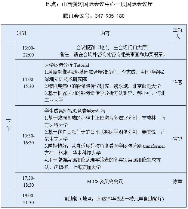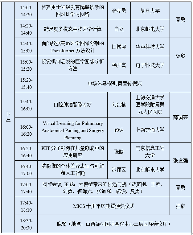 第十届医学图像计算青年研讨会日程安排