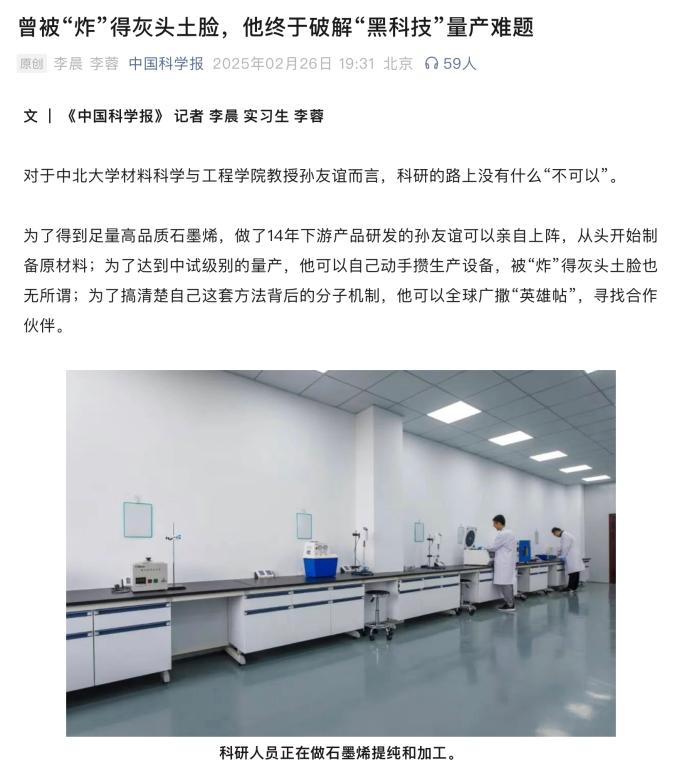 在指导老师的支持下,孙友谊与石墨烯从此结缘。
