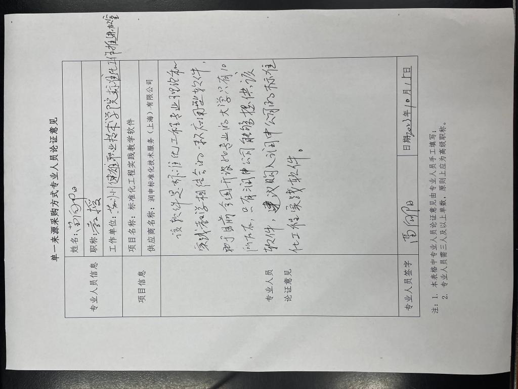 采用单一来源采购方式的原因及说明:目前开设“标准化工程”本科专业的大学非常少,在全国只有9个学校,开发“标准化工程”专业实验平台的企业只有润申标准化技术服务(上海)有限公司,全国仅此一家。