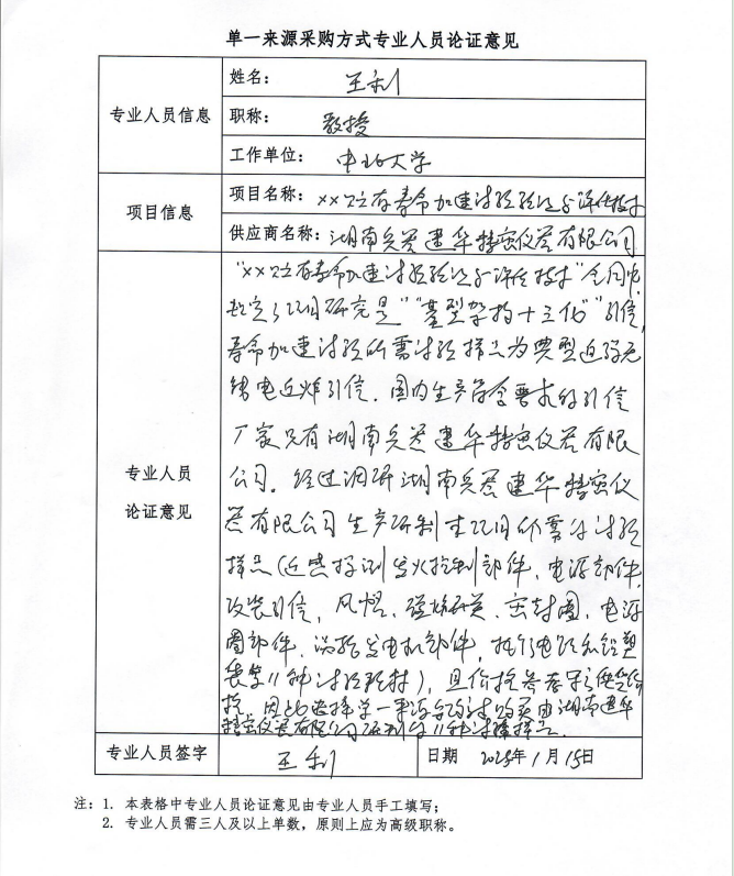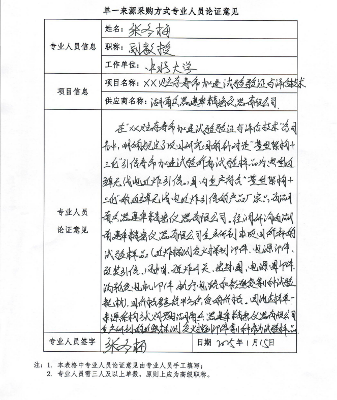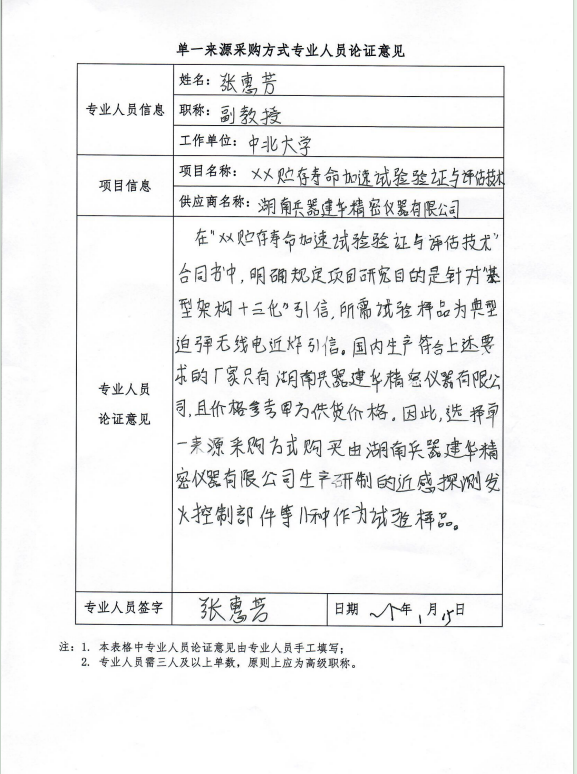 采用单一来源采购方式的原因及说明:原项目要求针对“基型架构+三化”的YX,国内生产符合“基型架构+三化”的YX的厂家只有湖南兵器建华精密仪器有限公司。本次试验样品为“‘基型架构+三化’YX的零部组件”,只有该厂能生产。经调研沟通湖南兵器建华精密仪器有限公司生产研制本项目所需的试验样品(近感探测发火控制部件等11种)。因此对我校XX验证与评估技术项目申请单一来源采购。