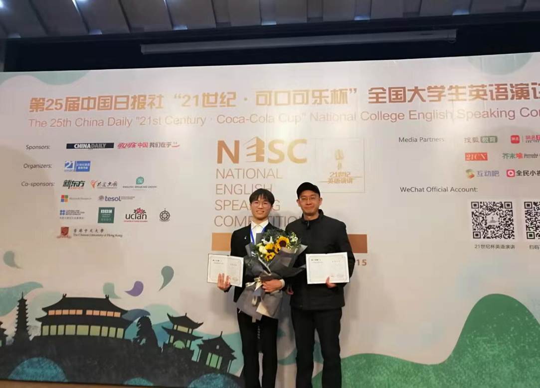 2019年12月15日,第25届中国日报社"21世纪·可口可乐杯"全国大学生英语演讲比赛山西赛区总决赛在太原理工大学进行,我校徐世雄同学表现优异,荣获冠军,指导教师李建明获优秀指导教师奖。徐世雄同学此前多次积极参加英语演讲和英语辩论比赛,积累了丰富的赛场经验和出色的竞赛能力,为这次取得好成绩奠定了非常好的基础。徐世雄同学通过了网络选拔、成功网络晋级,在电话口试之后,进入到山西赛区总决赛。在紧张激烈的比赛中,徐世雄同学凭借流利的语言,标准的发音,稳重的台风从山西多所高校选拔出的13名优秀选手中脱颖而出获得第一名的好成绩,期待在未来的国赛中有更出色的表现。