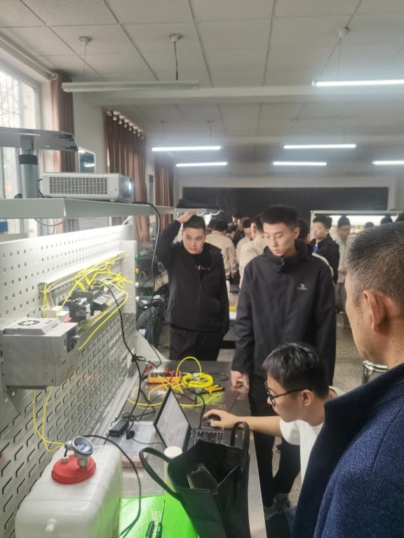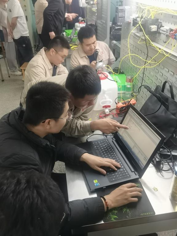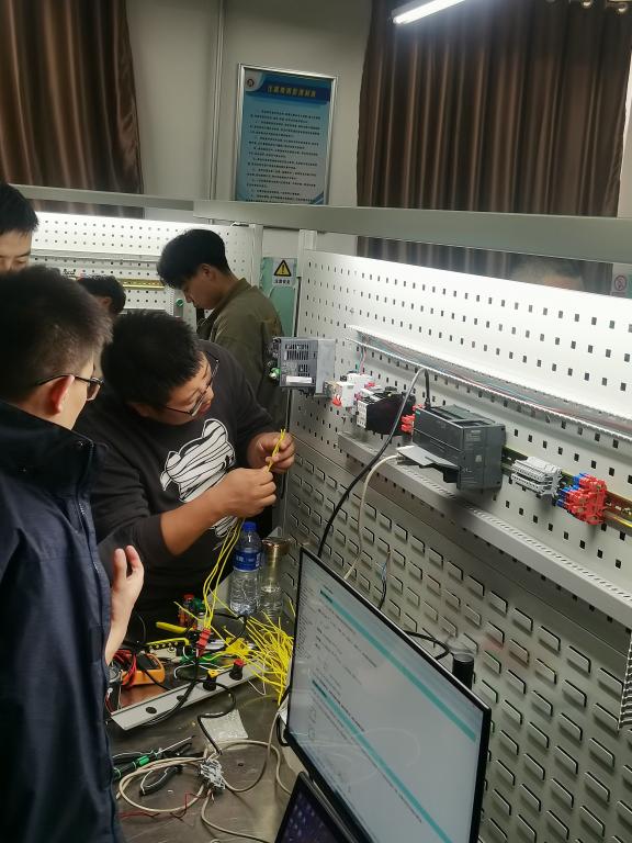 此次研修班为期十天,来自汾酒集团7家分厂推荐的32名技术骨干员工参加了全封闭脱产培训学习。我校高度重视培训成效,选派经验丰富的指导教师,利用智慧教室与工程训练中心实验室,和学员们一起完成了工业自动化、工业机器人、工业互联网等方面的理论学习、实际操作以及学术前言讲座共96学时的学习。