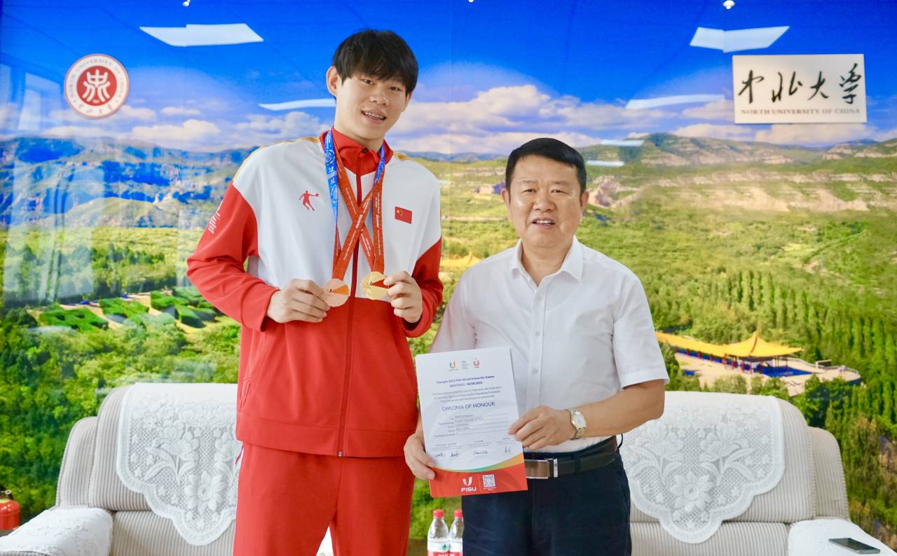 沈兴全向孟明宽同学及窦勇涛教练和陈丽莹老师表示祝贺,感谢他们为国家、为山西、为学校争得了荣誉。希望孟明宽同学再接再厉,在今后各项比赛中取得更好成绩,金牌含金量越来越高,未来的路越走越宽,向全世界展现中北学子的风采。同时希望相关部门创新工作,树立好、宣传好身边的榜样,全面展示优秀学子的拼搏精神,引领带动全校学生积极向上、成长成才,为进一步加强校风学风建设、培养更多优秀人才而不断努力。