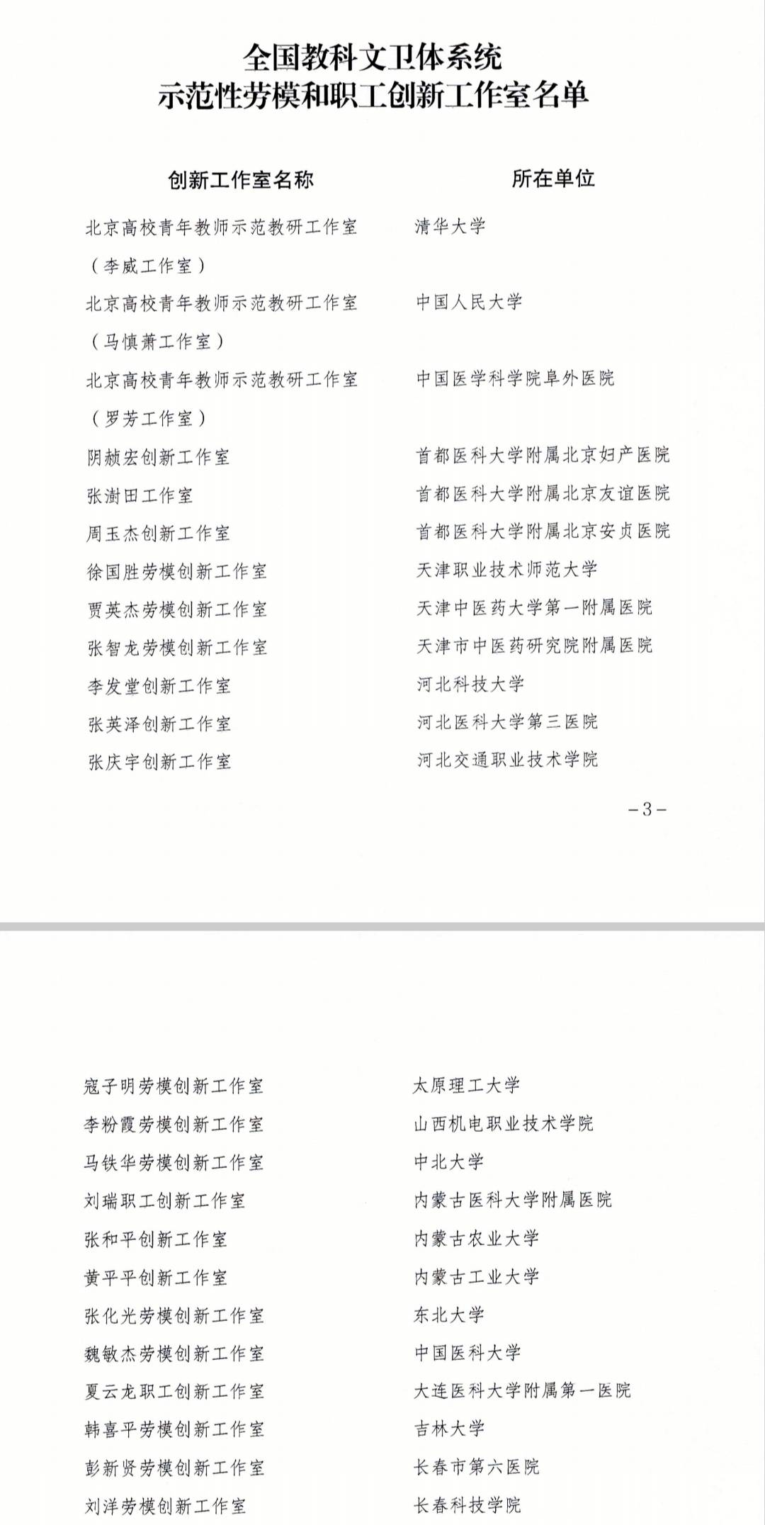 我校马铁华劳模创新工作室荣获全国教科文卫体系统示范性劳模和职工创新工作室