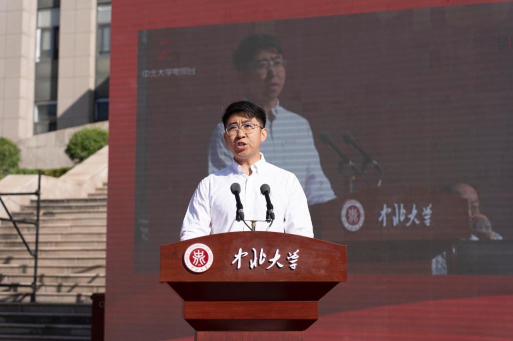 在校生代表、半导体与物理学院博士研究生贾涛结合自己在中北八年的求学经历和内心感悟,祝愿学弟学妹们不负光阴,在中北的新舞台里完成心态上的突破、追求上的突破和定位上的突破,坚信幸福都是奋斗出来的!