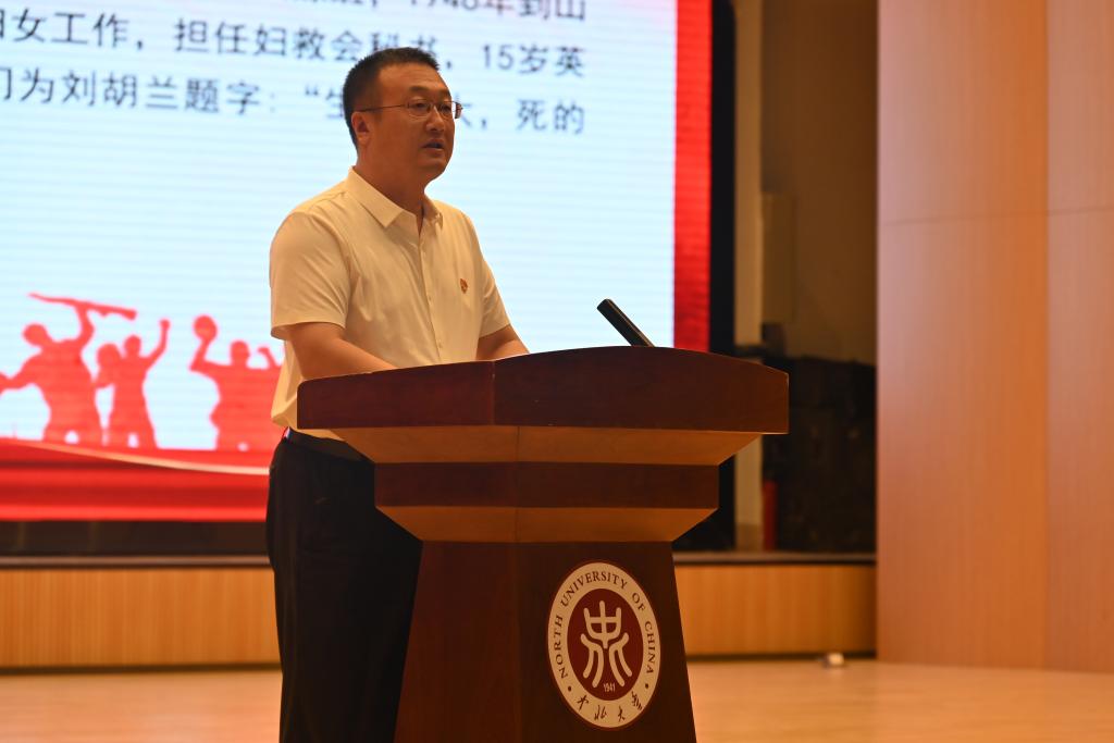 为深入学习贯彻习近平新时代中国特色社会主义思想,广泛深入抓好全民国防教育,进一步增强广大干部群众的国防观念和国防意识,营造热爱国防、关心国防、支持国防、建设国防的浓厚氛围,省委宣传部开展“踔厉奋发强国防 勇毅前行向复兴”全民国防教育主题宣讲,组织山西省军队离退休干部休养所“红星宣讲团”、山西省英烈英模家属宣讲团、省委党史研究院(省地方志研究院)党史宣讲团成员代表,深入11个市及省直工委、省委教育工委、省国资委党委、省委军民融合办进行巡回宣讲。9月19日下午,首场宣讲报告会在我校举行。省委宣传部二级巡视员杨志云、省委宣传部宣教处副处长赵东波、省委讲师团副团长杨荷梅、省委教育工委宣传部部长李艳庭、省委教育工委宣传部副部长薛敏等领导出席报告会。我校党委副书记雷锋斌、党委宣传部负责人及师生代表600余人现场聆听了宣讲。