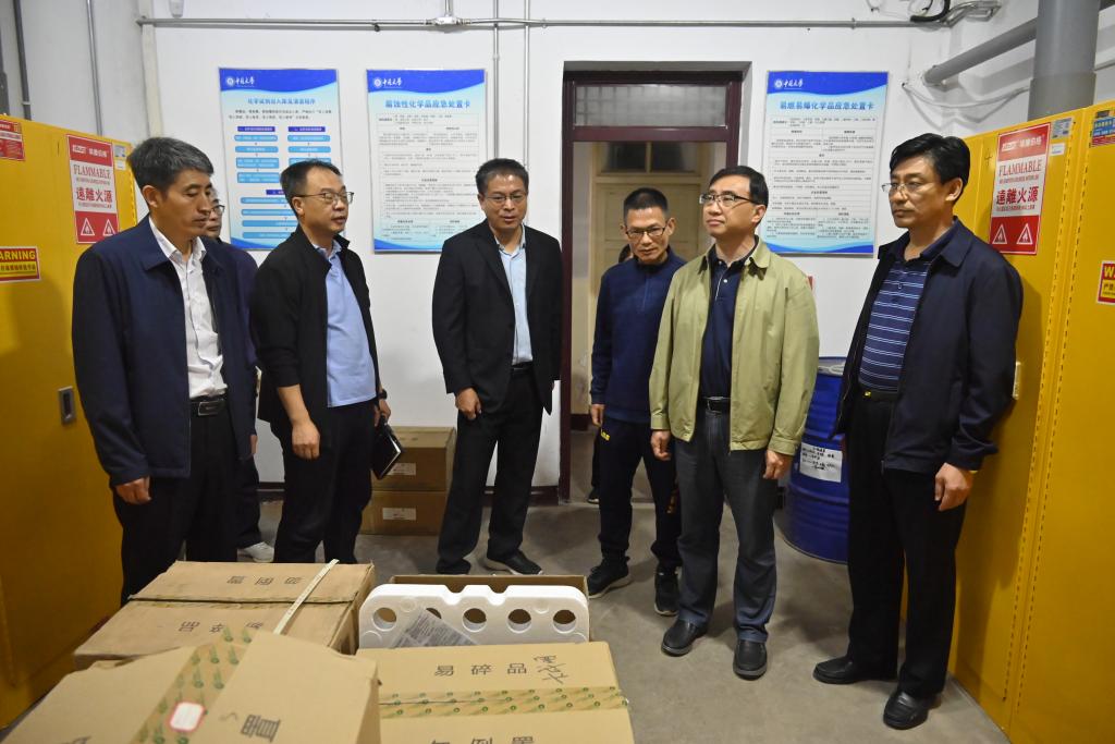 检查中,校领导一行先后到材料科学与工程学院高分子材料与工程专业性能测试实验室、塑性成形加工中心,环境与安全工程学院水污染控制工程实验室、环境工程综合创新实验室,化学与化工学院化工原理实验室、化学品仓库、化学废弃物回收站、传爆药研发试验室进行安全检查,重点查看了实验出入人员登记、设备维护、消杀、废液处置、易制毒制爆化学品使用、非管制类化学品使用、实验仪器设备使用、实验室危险废物投放等台账记录,实地检查了实验室设备设施、危化品管理、水电安全、气瓶安全、消防设施、喷淋设备管理及应急处置方案。并对当前实验室管理和安全存在的疏漏和问题,现场提出切实可行的整改意见和要求。随后,校领导到14号楼、东区报刊亭,对教学楼安全隐患、校园食品安全进行了大排查。