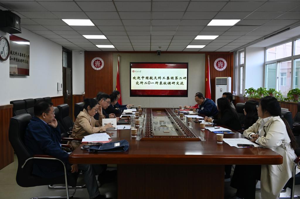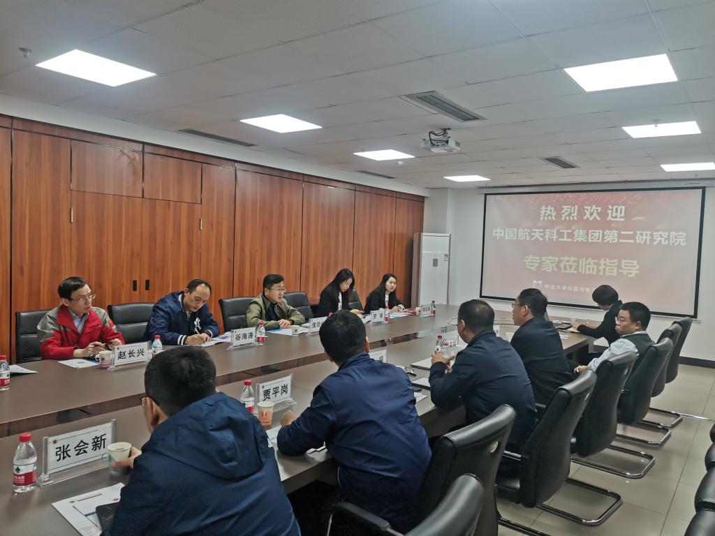 10月16日,中国航天二院二0一所副所长侯劲松一行来校调研交流。双方交流座谈会在德怀楼第四会议室召开。副校长苏铁熊出席。