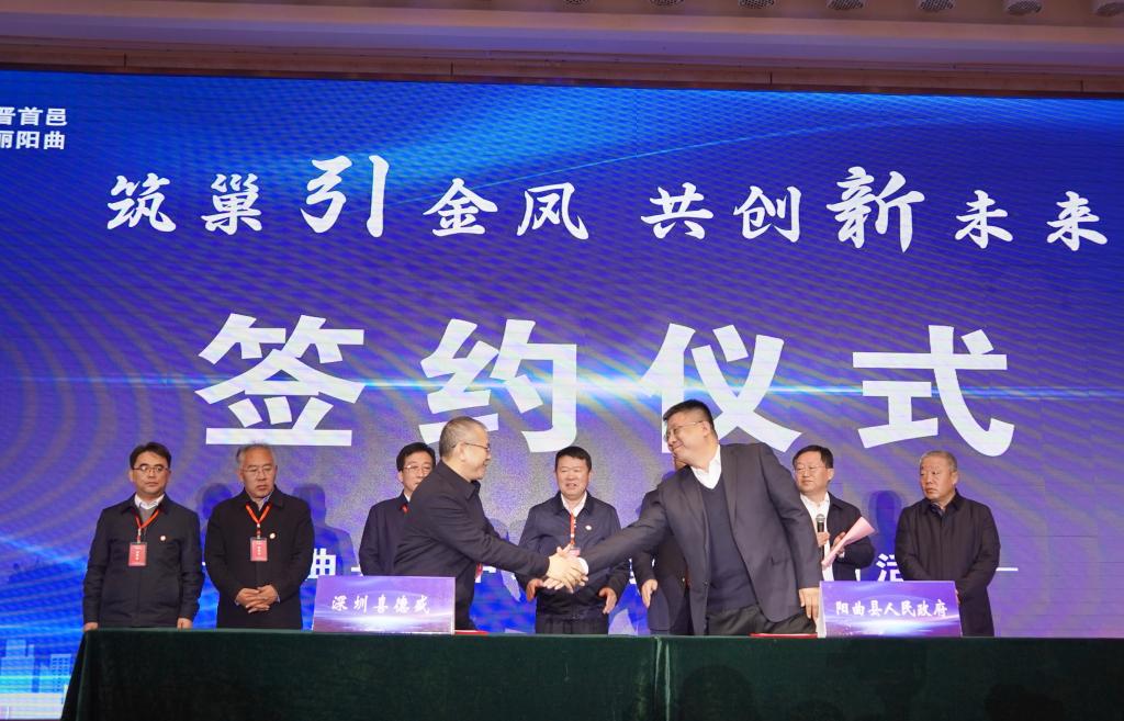 北京奇天大胜网络、深圳喜德盛碳纤维、北京晟通启富新能源、山西国牧科技4个中北大学校友企业与阳曲县签署项目合作协议,同时还有20余家校友企业与阳曲县签署合作意向。