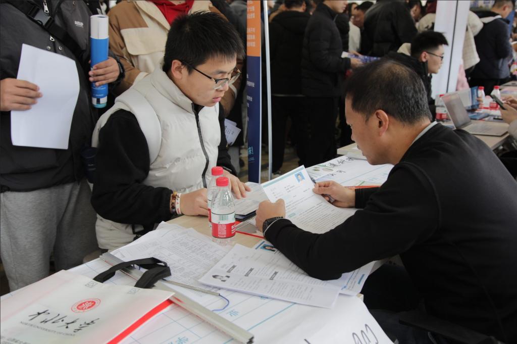 双选会现场人头攒动,秩序井然。毕业生们手持精心制作的简历,详细了解招聘要求,认真填写求职意向,全面展示推销自己;招聘单位代表认真介绍本单位用工岗位、工资待遇、工作环境以及发展前景等学生比较关注的问题并现场进行初步面试。
