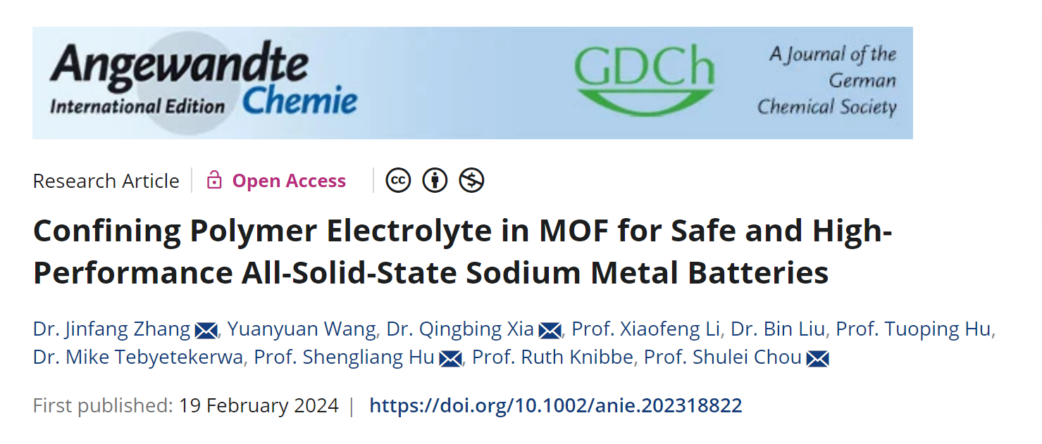 近日,我校材料科学与工程学院张锦芳副教授以第一作者及第一通讯作者在材料化学类顶刊Angew(IF= 16.6)报道了题为“MOF约束钠离子在聚合物电解质中的传输,实现高安全高性能全固态钠金属电池”的研究成果,共同通讯作者包括:澳大利亚昆士兰大学夏庆兵博士、中北大学能动学院胡胜亮教授、温州大学侴术雷教授。