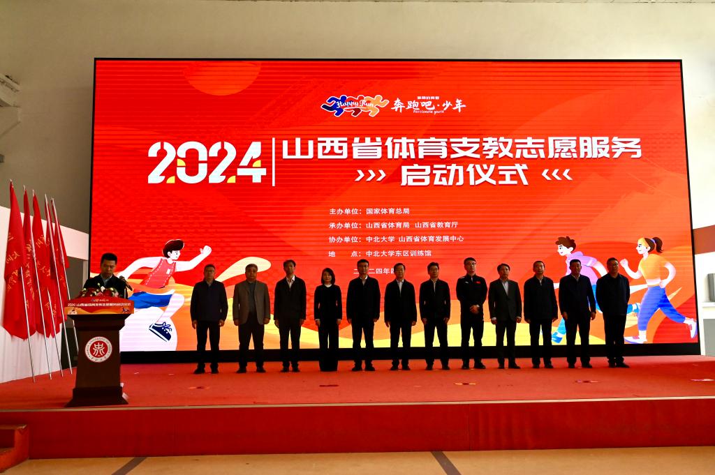 为进一步贯彻落实党的二十大精神和习近平总书记关于体育的重要指示批示精神,助力乡村振兴,践行体教融合,4月30日上午,2024年山西省体育支教志愿服务活动启动仪式在我校东区训练馆举行。山西省体育局二级巡视员李润民,山西省教育厅副厅长侯文一、我校副校长蔡江辉出席启动仪式。省体育局、省教育厅、山西大学、太原理工大学、山西师范大学、大同大学和我校体育学院有关负责人参加启动仪式。