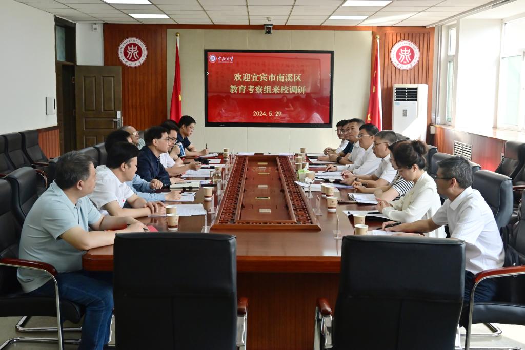 5月29日上午,宜宾市人大常委会党组副书记、一级巡视员邓前卫,宜宾市南溪区委书记、南溪经开区党工委书记刘刚一行来校调研,并与我校签署战略合作框架协议。校长陈钱出席会议并致欢迎词。副校长尹建平、宜宾市南溪区人民政府副区长何星洁分别代表双方签署战略合作框架协议。