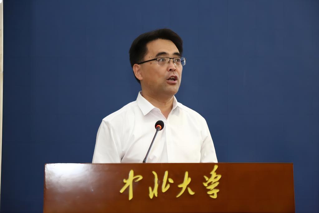 尹建平代表学校向与会的各位领导、嘉宾、专家和同学表示热烈欢迎。他指出,此次大赛是山西省举办的第一届省赛,必将承载更多的科学普及使命,担当更重的培养人才责任,传承更广的新时代北斗精神。希望广大青少年通过第十五届 “北斗杯”大赛,培养创新思维,提高实践能力;希望各参赛单位,珍惜并致力于打造好这个高水平的科技竞技平台;更期望社会各界,一如既往地关心和支持“北斗杯”大赛;希望广大参赛师生, 弘扬以 “自主创新、开放融合、万众一心、追求卓越” 为核心的新时代北斗精神,赛出成绩、赛出水平,并取得优异成绩。