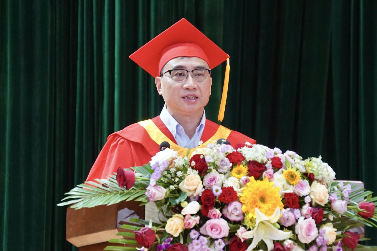 陈钱在致辞中代表校党委、校行政向圆满完成学业的毕业生致以最热烈的祝贺,向山西工学院的领导、辛勤培育莘莘学子的老师和默默奉献、无私付出的家长们表示衷心的感谢。他代表学校向即将步入社会的毕业生送上三点嘱托:一是希望同学们始终做到坚定理想信念,为人生出彩锚定航向。把自己的理想融入到祖国发展的伟大事业中去,融入到行业发展和社会进步中去,去争当中华文明的传承者、产业发展的推动者和国家腾飞的贡献者;二是希望同学们始终追求“手中有本领”,为人生出彩蓄力扬帆。要善于学习新知识、勤于掌握新技能、敢于攀登新高峰,面对前进道路上风高浪急,甚至惊涛骇浪的重大考验,能投身于自己所热爱的行业,不断提高能力和本领,成就更有价值的人生;三是希望同学们始终保持“脚下有力量”,为人生出彩满舵前行。为者常成、行者常至,希望同学们能日积月累地凝聚起为理想拼搏的力量,拒绝内耗,为人生出彩满舵前行。