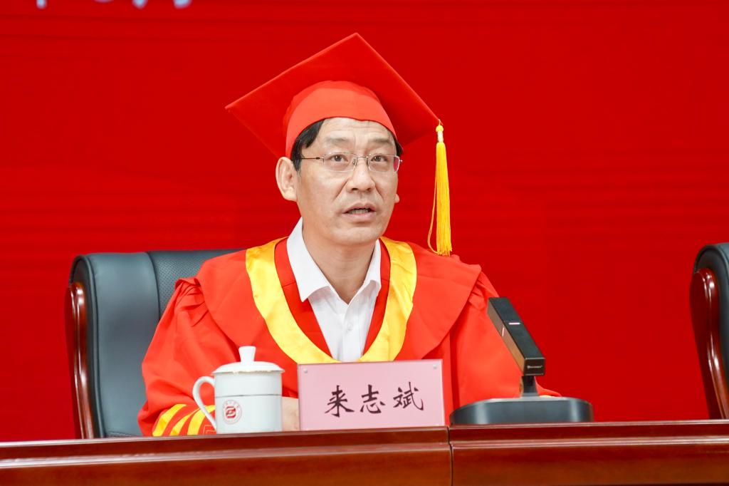 来志斌向毕业生表达了热烈的祝贺,并回顾了毕业生们四年的成长历程,高度肯定了他们在学习、实践和创新能力方面所取得的优异成绩。