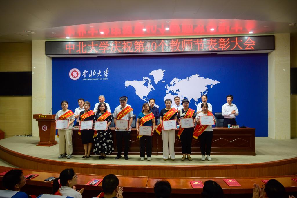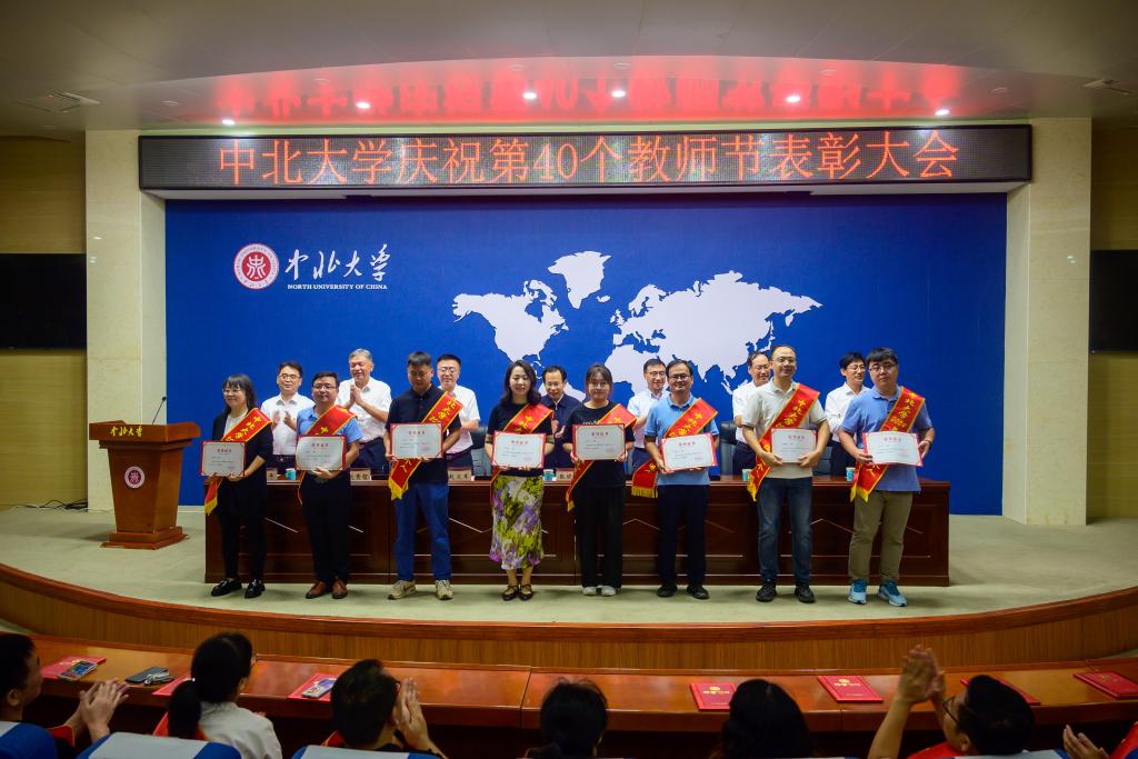 校党委副书记赵文军、副校长赵贵哲、来志斌分别宣读了《中北大学关于表彰2024年师德建设先进集体、师德标兵和师德先进个人的决定》《中北大学关于表彰第九届“‘知行杯’我最喜爱的教师”的决定》《中北大学关于表彰2024年“美利信奖教金”获得者的决定》。主席台领导分别为获奖集体和个人颁发了荣誉证书、奖金和奖牌。