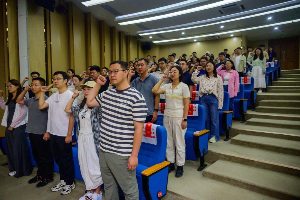 “师德标兵”和第九届“‘知行杯’我最喜爱的教师”荣誉称号获得者陈友兴代表获奖教师发言。他分享了自己从教20多年来帮助学生成长、勉励学生进步、引导学生求学过程中的感动瞬间以及不断勤学苦练的科研教学心得,鼓励教师同仁要在“为人师”这一事业中有更大担当作为。“美利信奖教金”获得者李剑带领新入职教师宣誓。会议在铿锵有力的校歌声中圆满落幕。