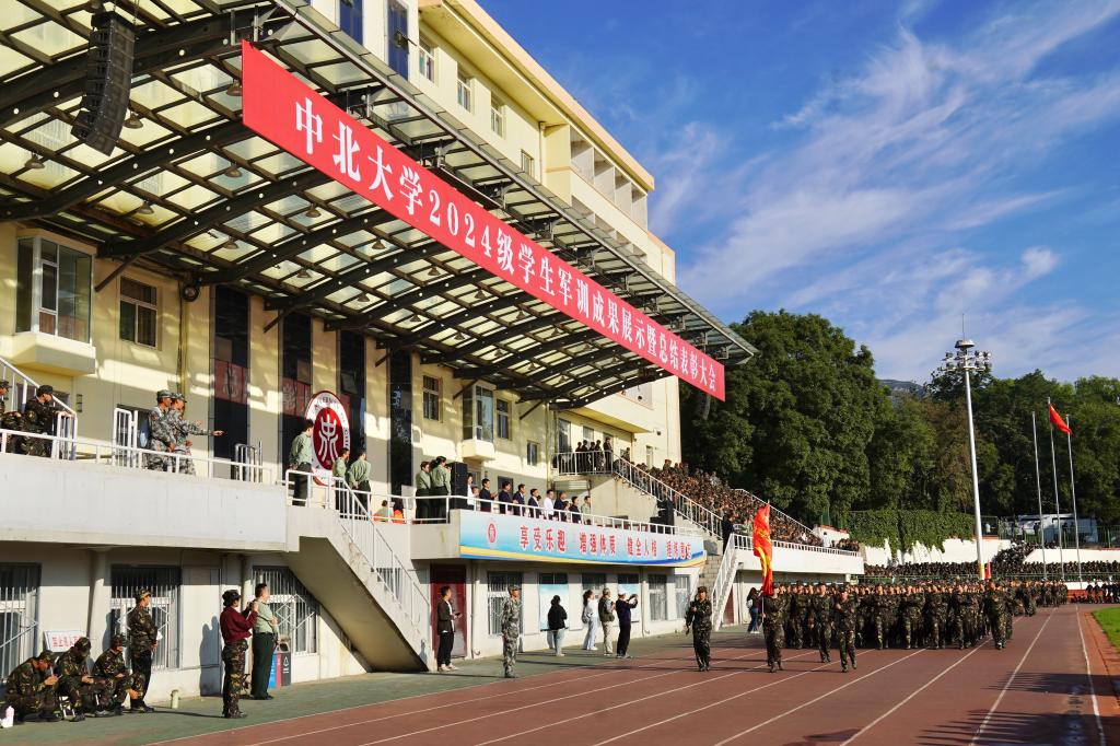 汗水铸就青春,军训点燃激情。9月22日上午,我校2024级新生军训汇演暨表彰大会在主体育场举行。校领导陈钱、 赵文军、贾维河、赵贵哲、来志斌、尹建平、杨风暴,军训团成员、全体教官参加大会,共同见证近万名中北新同学14天的军事训练的成果。军训团政委、副校长尹建平主持大会。