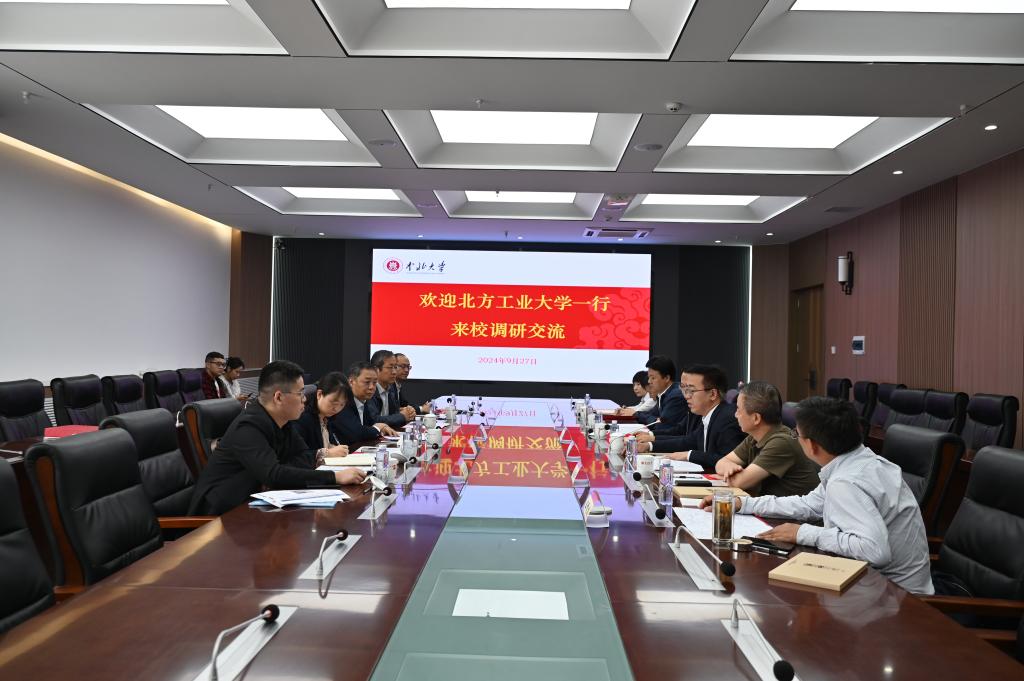 9月27日,北方工业大学党委书记刘军、党委副书记史贞军一行来校调研交流。校党委书记张晓永、党委副书记赵文军出席座谈并陪同考察。学校办公室、党委宣传部、学生工作部、科学技术研究院及马克思主义学院等单位负责人参加。党委副书记赵文军主持座谈会。