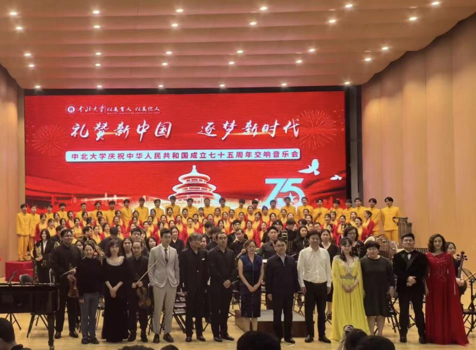 9 月 29 日晚,“礼赞新中国,逐梦新时代”—— 中北大学庆祝中华人民共和国成立75周年交响音乐会在科艺苑举行。副校长来志斌、尹建平出席。各相关职能部门、学院负责人及600余名师生聆听了音乐会。