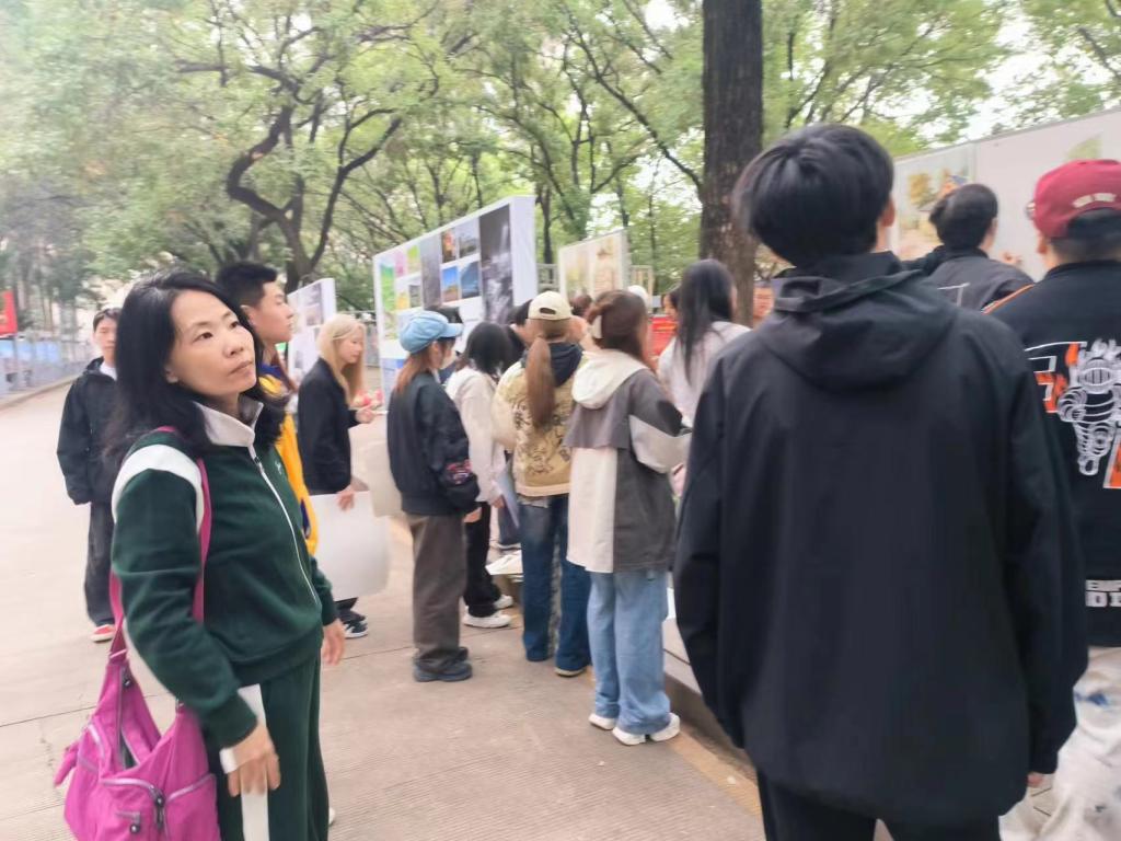 为庆祝中华人民共和国成立75周年,9月27日,我校在中央大道举办艺术作品展,涵盖了摄影、绘画、剪纸等多种艺术形式,吸引了众多师生前来观展。